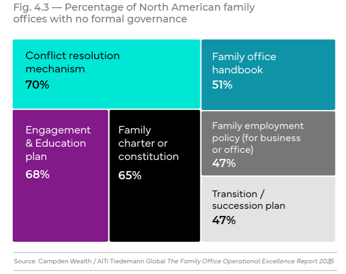 Wealth continuity is as much a governance challenge as a financial one. Family offices managing more than US $1 billion in assets can reduce operational costs to as low as 36 basis points when they adopt formal governance frameworks (Campden, 2025).